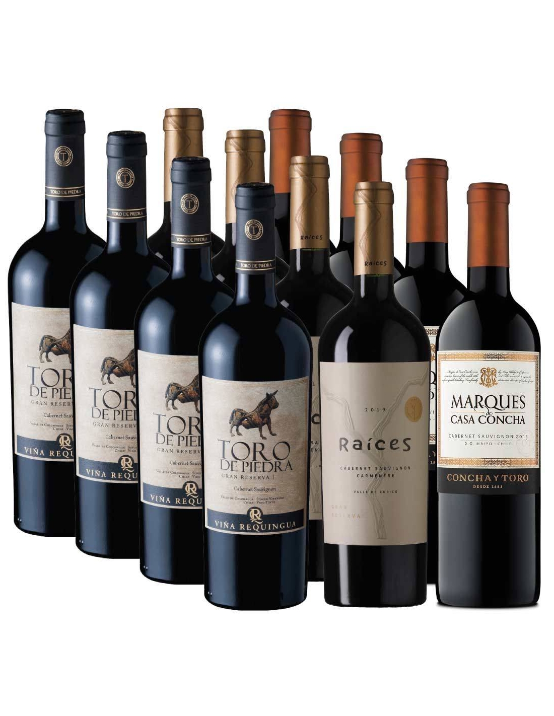 Pack mix 12 Marqués de Casa Concha, Toro de Piedra y Raíces